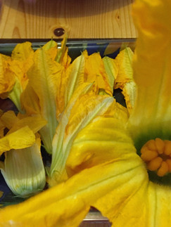 市場で仕入れて来たのはズッキーニの花、日本では高価なんだよね。ペーストと