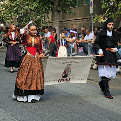 パレードの最後は恒例、100 Donne(100人の女性)、違う町村の女性5人ずつが手を