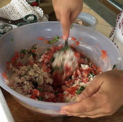 トマトはグチャグチャっと手で感触を見ながら混ぜる