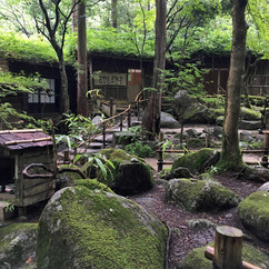 いやぁ、すごいアンティークな日本家屋にすごく緑が綺麗なお庭!